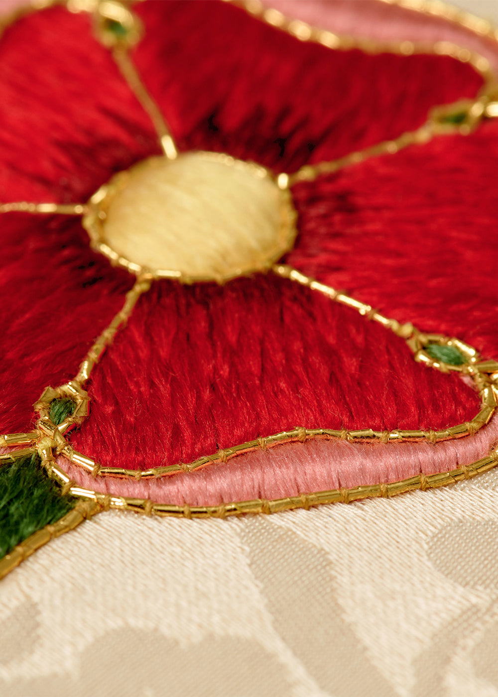 The cathedral already had a high altar frontal but required a smaller chapel superfrontal. Aura’s role was to adapt the original design at a reduced scale to ensure a harmonious addition. After providing working sketches and a fabric sample for colour verification, we commenced over 100 hours of intricate hand embroidery. The finished superfrontal measured 75.58" in width with a 9.5" drop, showcasing meticulous detail that complemented the existing high altar frontal.