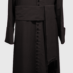 This 5" wide black cincture band is the perfect addition to your clergy attire, offering both practicality and elegance. Designed with a button fastening at the waist and drop ends, the cincture band is available with two fringe options: plain fringe or hand-knotted fringe, depending on your preference.