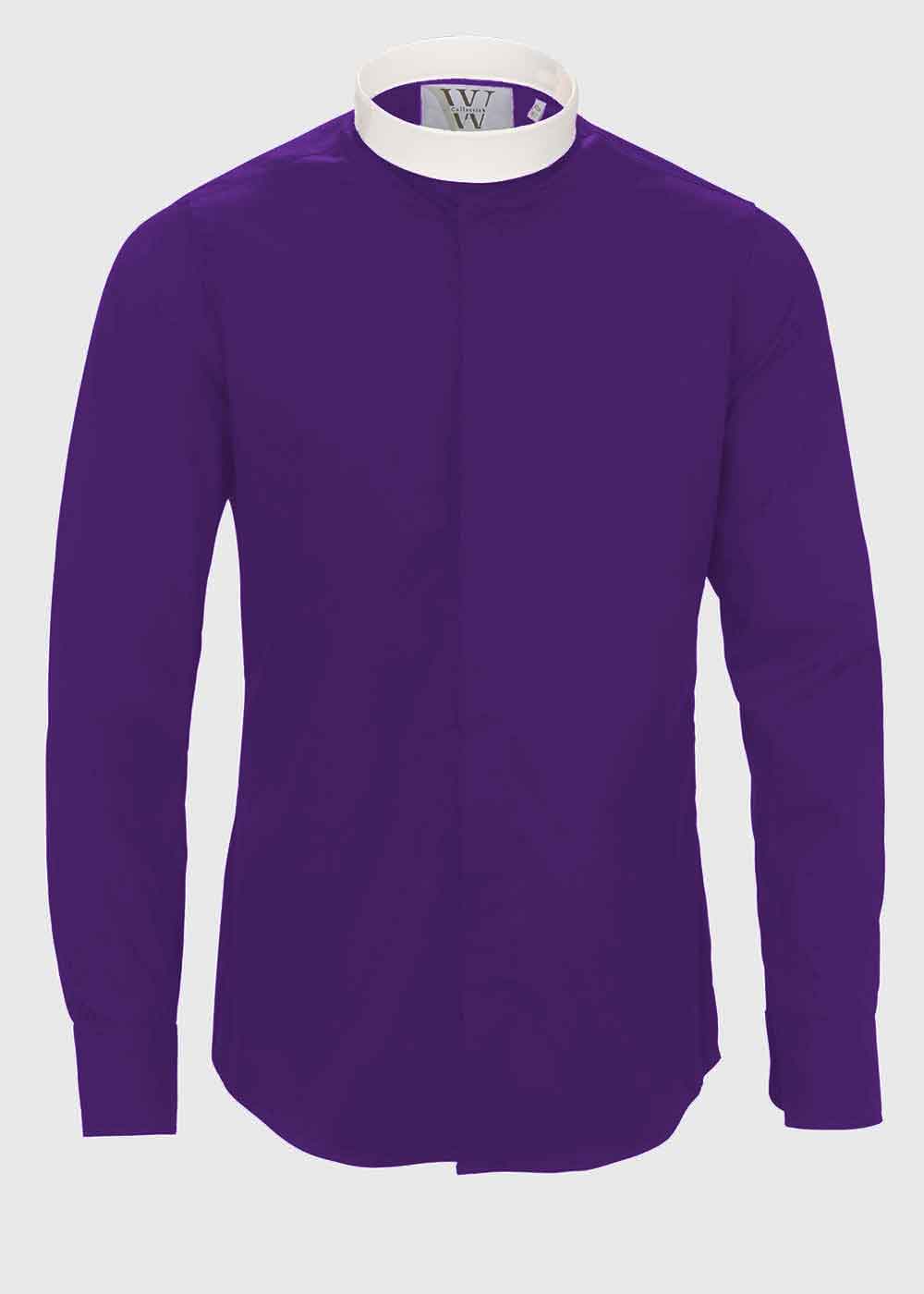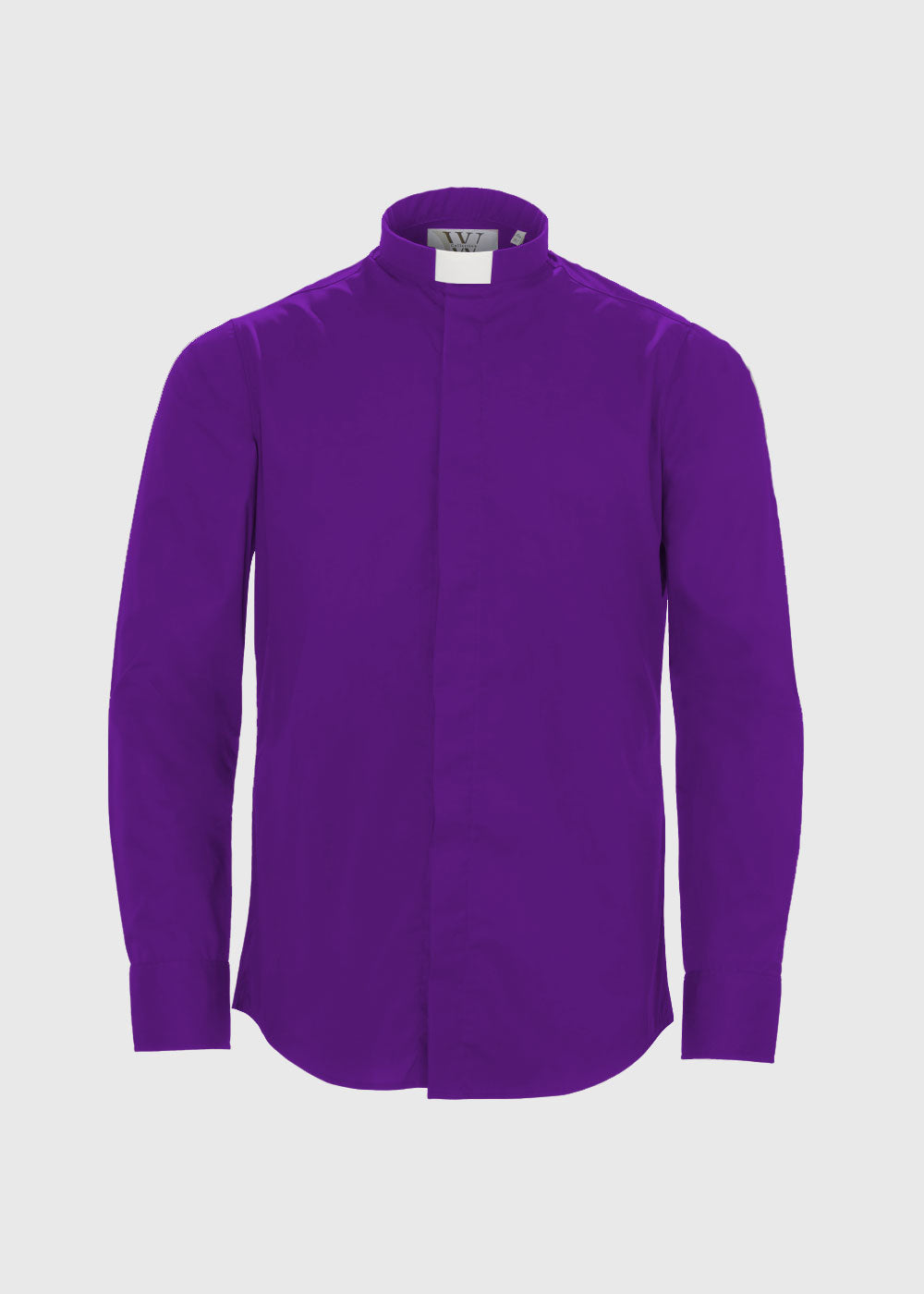 Red Purple Slim Fit Clergy Shirt, Mens, Tunnel Neck, Fly Front